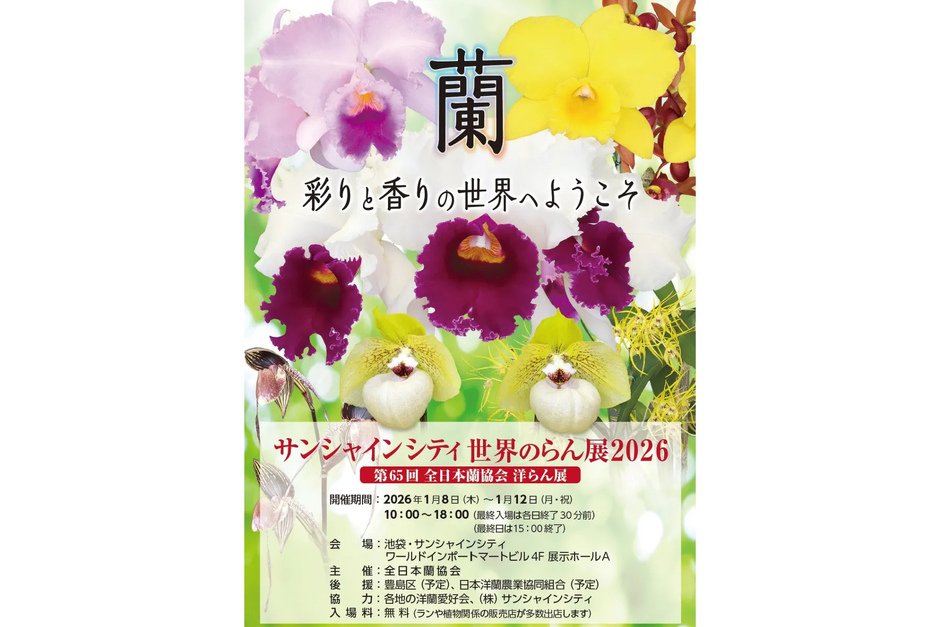 「Sunshine City 世界的蘭展2026(第65屆全日本蘭協會洋蘭展)~歡迎走進蘭花的色彩與香氣世界~」將舉行。