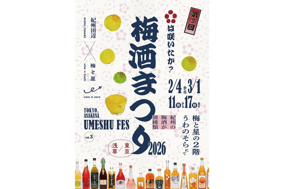 能享用和歌山縣絕品梅酒100款的『紀州梅酒祭2026』今年也將在淺草的「梅と星」舉辦!