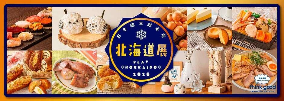 日本橋三越本店本館7樓 催事會場將舉辦「北海道展」。以「PLAY HOKKAIDO」為主題,介紹只有冬季北海道才有的豐富飲食文化與各式特產。會場將以以旨味自豪的拉麵、由世界大賽得獎主廚操刀、被稱為“冰點下的藝術”的話題義式冰淇淋,以及因廢線而中斷的熱門車站便當復刻之紋別名物便當「帆立めし」等為亮點,另外也網羅了只有冬天才更美味的海鮮與大地恩惠、話題美食。並有眾多源自人與自然交織而成的北海道創作的工藝品展出。透過內用、實演、工作坊,帶您在12天內體驗冬季北海道在飲食與生活上的魅力。歡迎把握機會前來參觀。