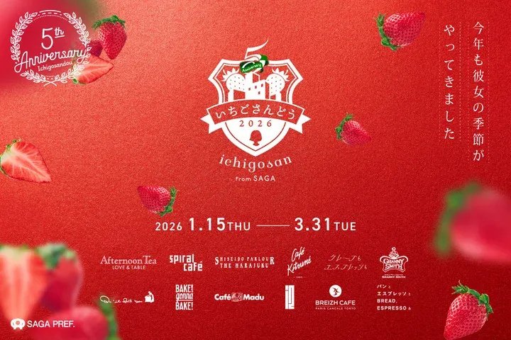 佐賀的品牌草莓「いちごさん」將與表參道的咖啡館、餐廳合作,舉辦特別企劃「いちごさんどう2026」,提供使用「いちごさん」製作的甜點菜單。