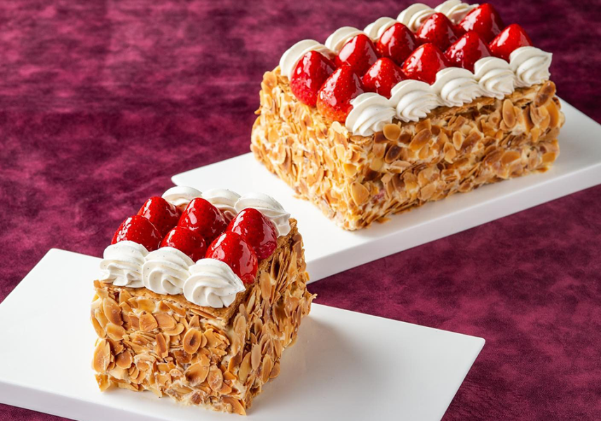 重現曾在銀座深受喜愛的「Maxim’s de Paris」食譜而成的「草莓千層派」,是本店的代表逸品。 帶有君度橙酒香氣的卡士達醬與酥脆的派皮、多汁的草莓交織出和諧風味,敬請品味。 亦可外帶,作為伴手禮也十分合適。