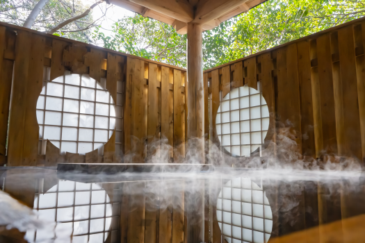 設有以竹子、木炭、波動石等天然素材打造的浴槽,以及可欣賞夢幻投影映射的浴槽等,齊備個性鮮明的9種溫泉。各浴槽泉溫各異,您可依喜好選擇適合的溫度慢慢放鬆,享受以五感感受自然的奢華時光。